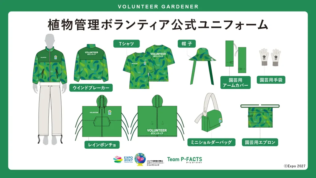 GREEN EXPOが掲げる「幸せを創る明日の風景」を背景に、ユニフォームもその思想を体現する存在として設計。